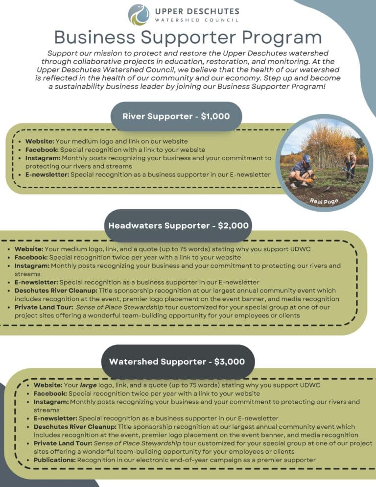 “Mt. Bachelor and Sun Country Tours support the Upper Deschutes Watershed Council because the health of the rivers is important to our community, economy, the natural world, and future generations. The quality of life for all inhabitants and visitors of Central Oregon is better when water resources are cared for. We thank the Upper Deschutes Watershed Council for serving as leaders, educators, and stewards of this work. provides generous support for our work.” –Presley Quon, Communications & Community Relations Manager